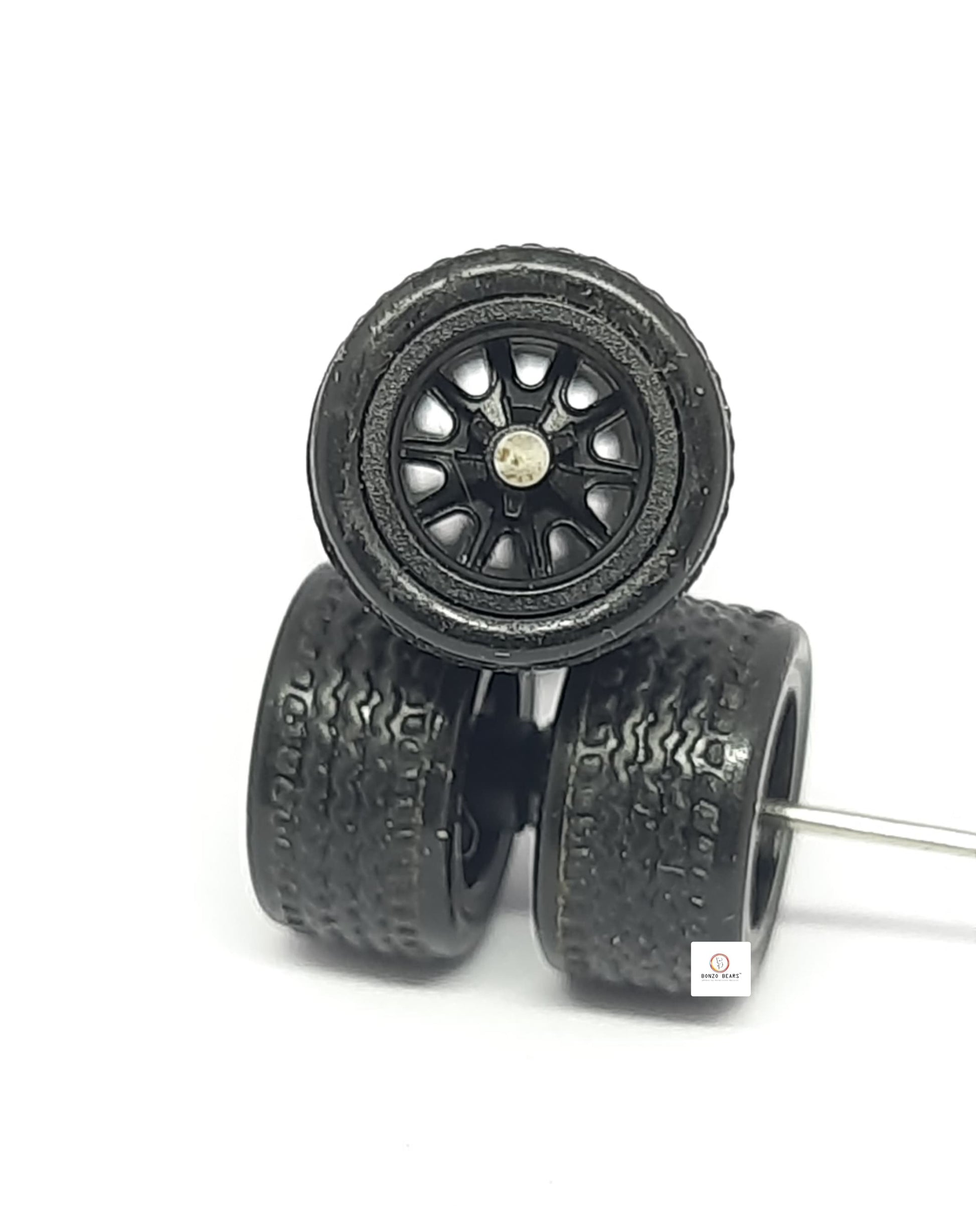 10mm Dia MultiSpoke - Black Rim Rubber Tyres - for 1/64 car