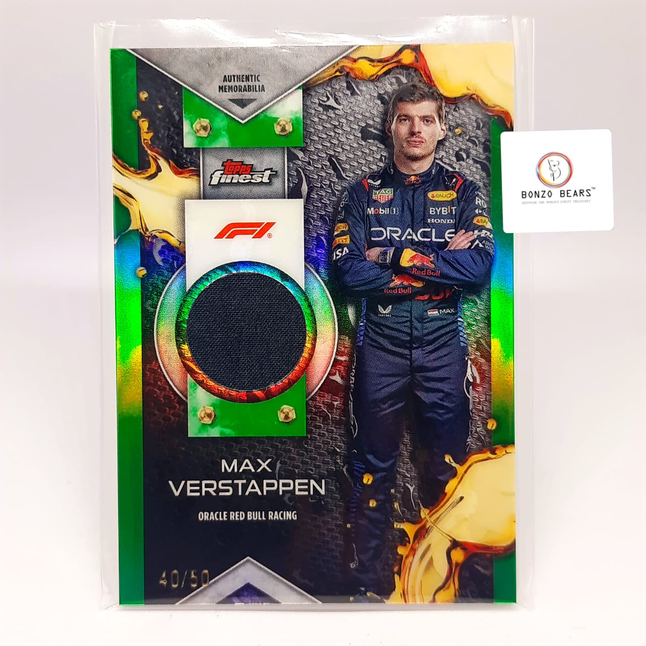 Max Verstappen (Numbered Relic Patch card) -2024 Topps Finest Formula 1 F1 Green 40/50 #F1R-VER | Bonzo Bears